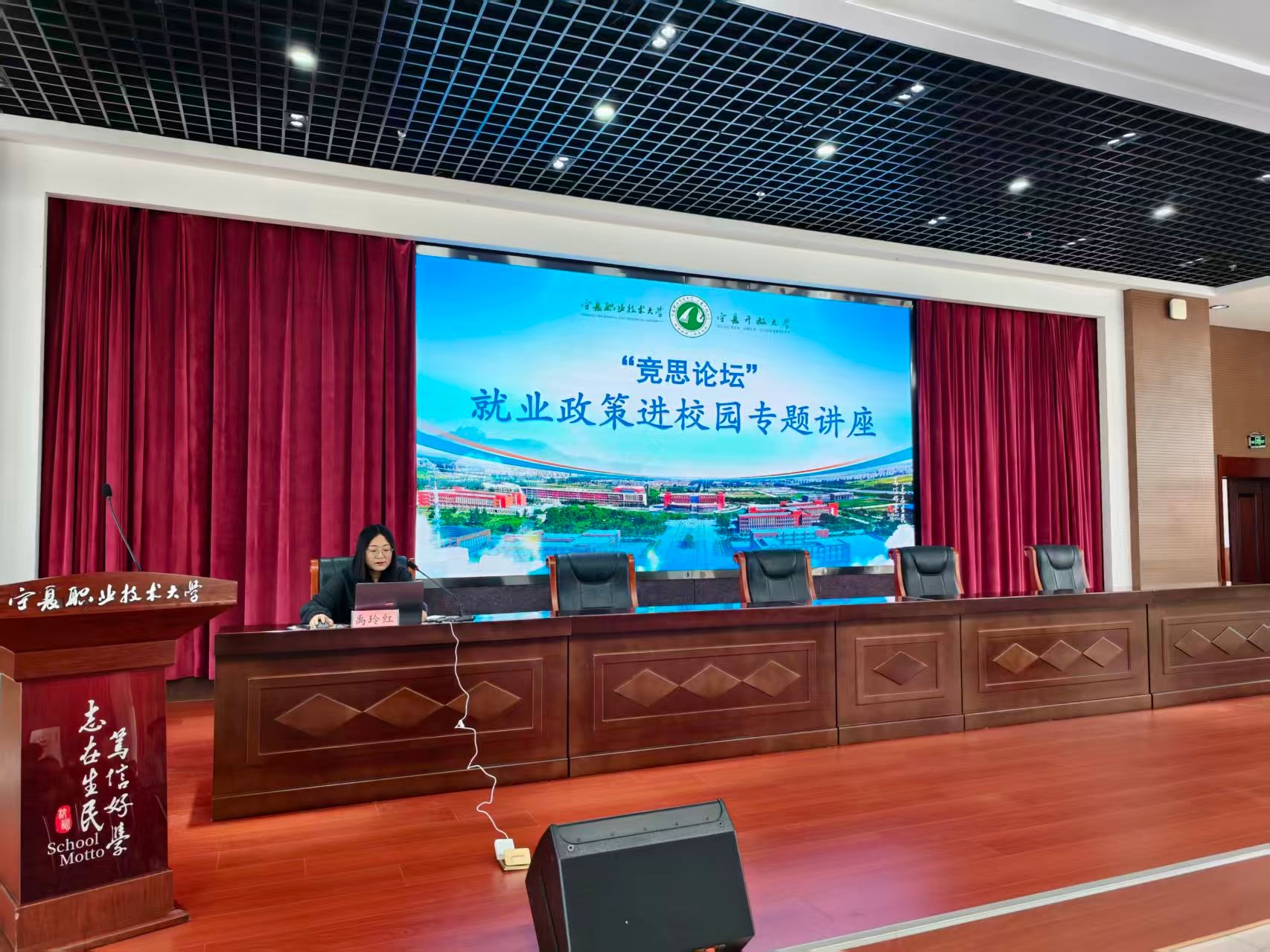 3 月 24 日下午,我校 “竞思论坛 —— 就业政策进校园” 专题宣讲活动在竞贤楼三楼报告厅顺利举行。本次活动特邀西夏区就业创业服务中心相关负责人到场宣讲,学校就业与合作交流处相关人员、各院系就业专干、毕业班辅导员及 210 名学生代表共同参加活动。
